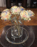 A Beautiful Decorative Piece: Any room in a home or office will absolutely stand out with this one of a kind piece. Our roses are specially crafted, the petals hand placed with iridescent, holographic specially made material. They are then lusciously dipped by the stem in our 24K Gold formula giving them their gorgeous eye catching look.