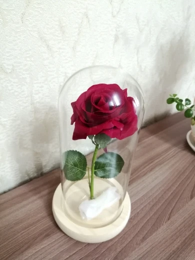 A Rose designed to last forever encased in a glass dome symbolizing Faith in Love Forever. A special way of telling him or her "Love you more as time goes by". This home decor item is sure to look amazing in any room or office. The perfect gift for The Holidays, Valentine's Day, Anniversaries, Weddings, or Birthdays. Our Enchanted Rose Light creates a nice and comforting feeling in the house when spending time with your family.